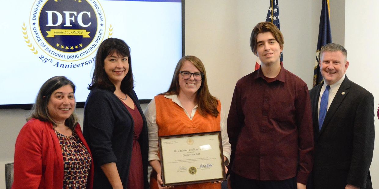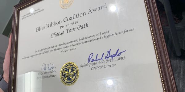 Choose Your Path was one of 15 Drug-Free Community Coalitions from across the country receiving a Blue Ribbon Award. The Blue Ribbon Coalition Award recognizes high performing coalitions that do an exceptional job creating a foundation for their work by updating and utilizing their coalition products. It is a two-year recognition that opens new doors for coalitions to share their work and become a role model in the prevention field.